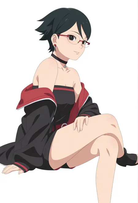 sarada_uchiha_tbw, short hair, black hair, glasses, black eyes