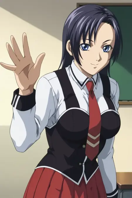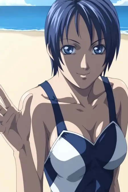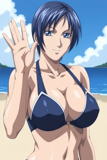 来自《新圣经黑》(Shin Baiburuburakku/新バイブルブラック)/《圣经黑:新约》的Saeki教派短发蓝发成员lora。