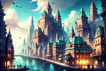 これにより、環境がファントジックになり、アール・デコに強く傾きます。キャラクターのポートレートで試しましたが、それらにはそれほど影響を与えません。トリガー言葉は「fantastic」です。