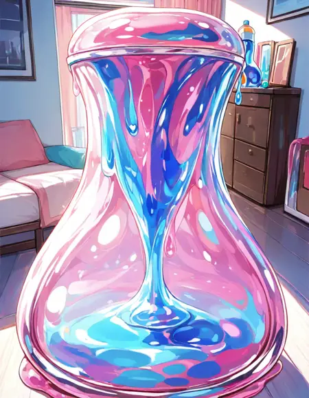 slimy coating, slimy water in bottle, head above bottle, slimy water, against glass, slimy water in jar