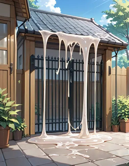 legs and knees covered in slime, foot covered in slime, slime stuck to shoulder