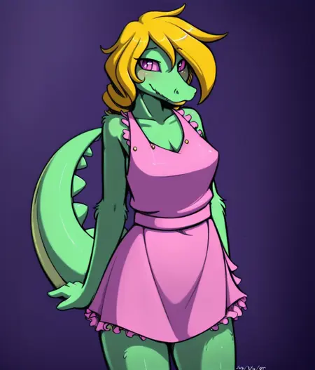 Trained on my mix "Fluffy Univrse" or FluffyRock (Vpred). Generations on other models in some cases may show less correct results.