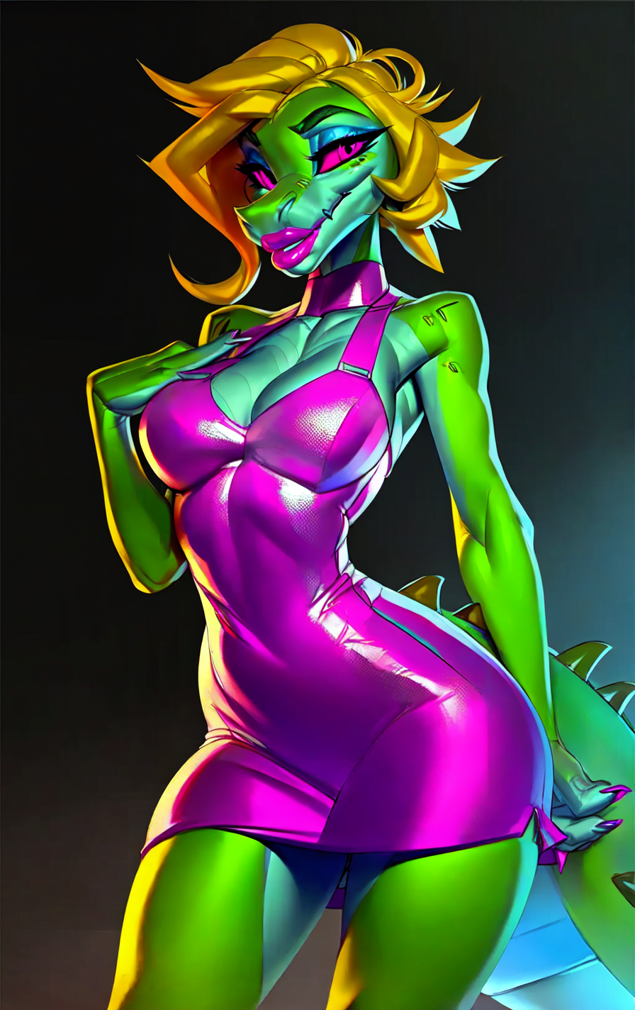 강화 태그: 악어, 꼬리, 색깔 있는 공막, 분홍색 눈, 드레스