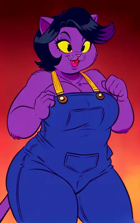 강화 태그: 고양이, 꼬리, 노란색 고양이 눈, 색깔 있는 공막, 덩거즈