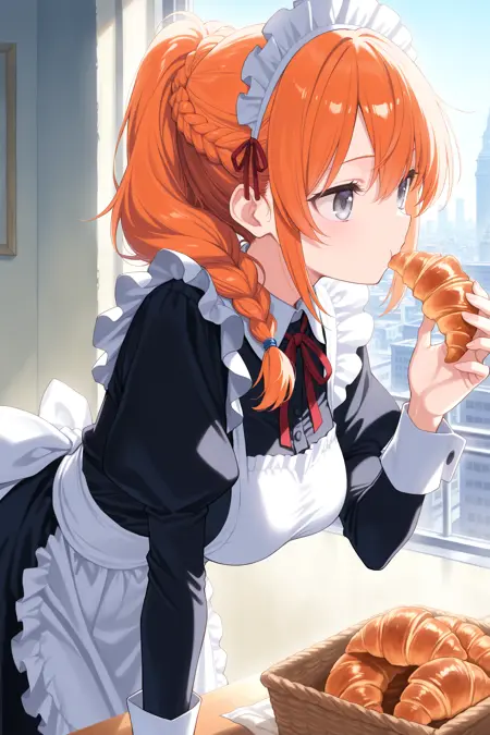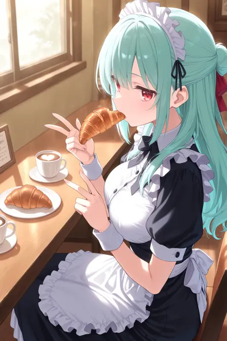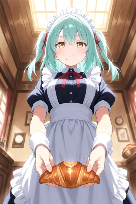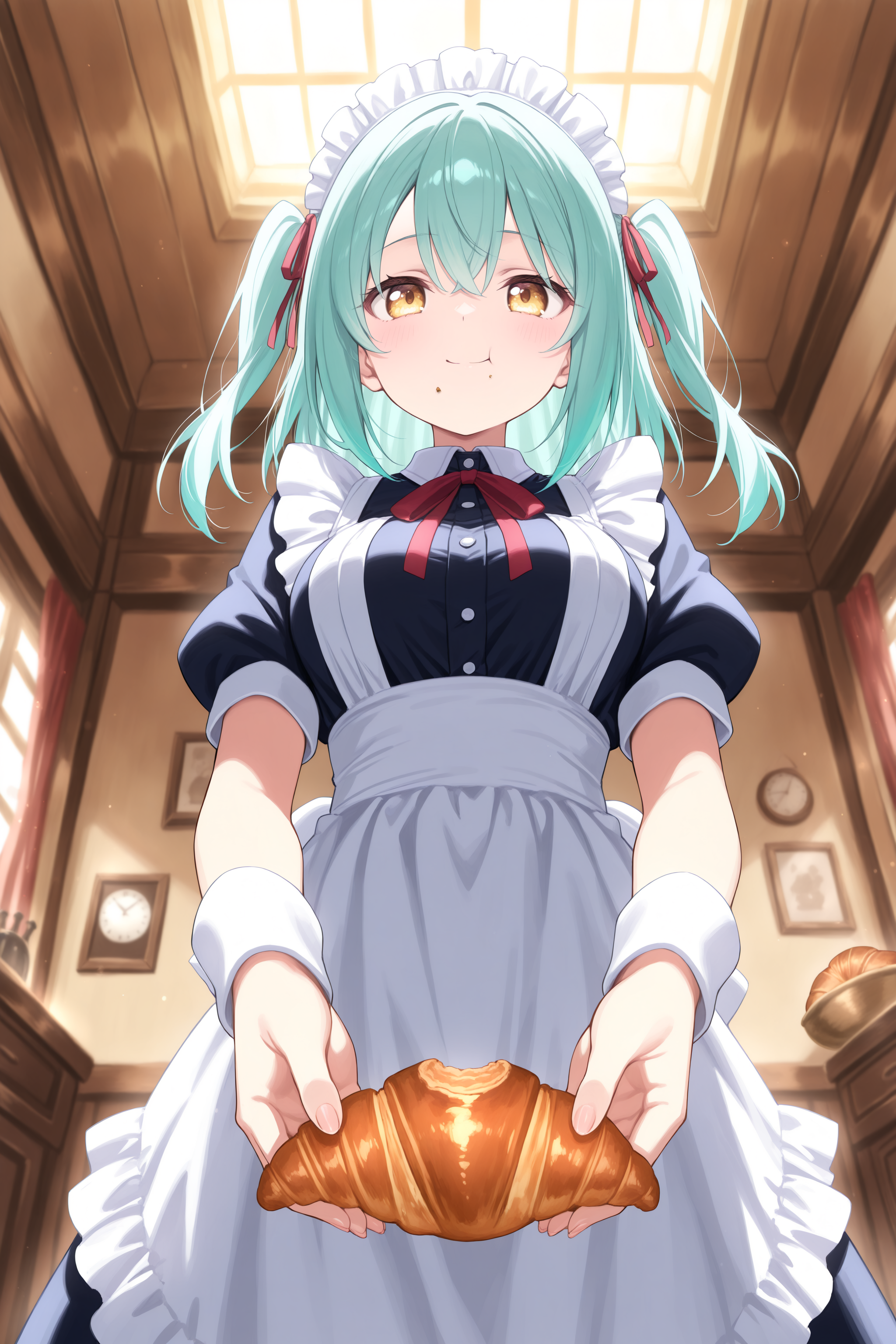 It was trained from scratch but produced salt bread or cornet-like appearances, so it's been corrected. You can generate just the trigger, so use bread, food, holding food, eating, or food in mouth as desired.