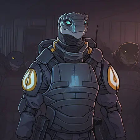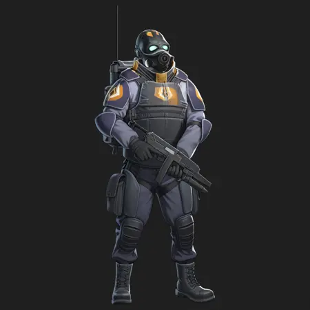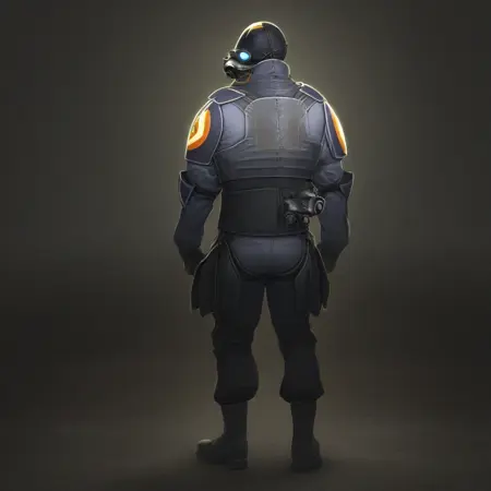 Ordinal,bulletproof vest,gas mask,blue glowing eyes,