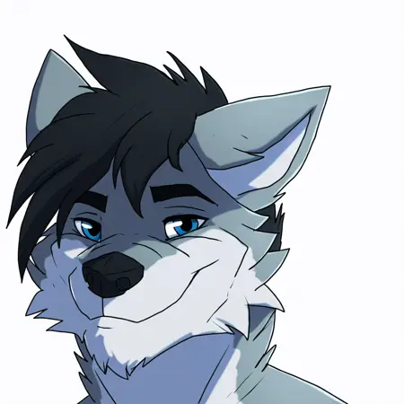 Maku: 1boy, wolf, grey fur, black hair, blue eyes