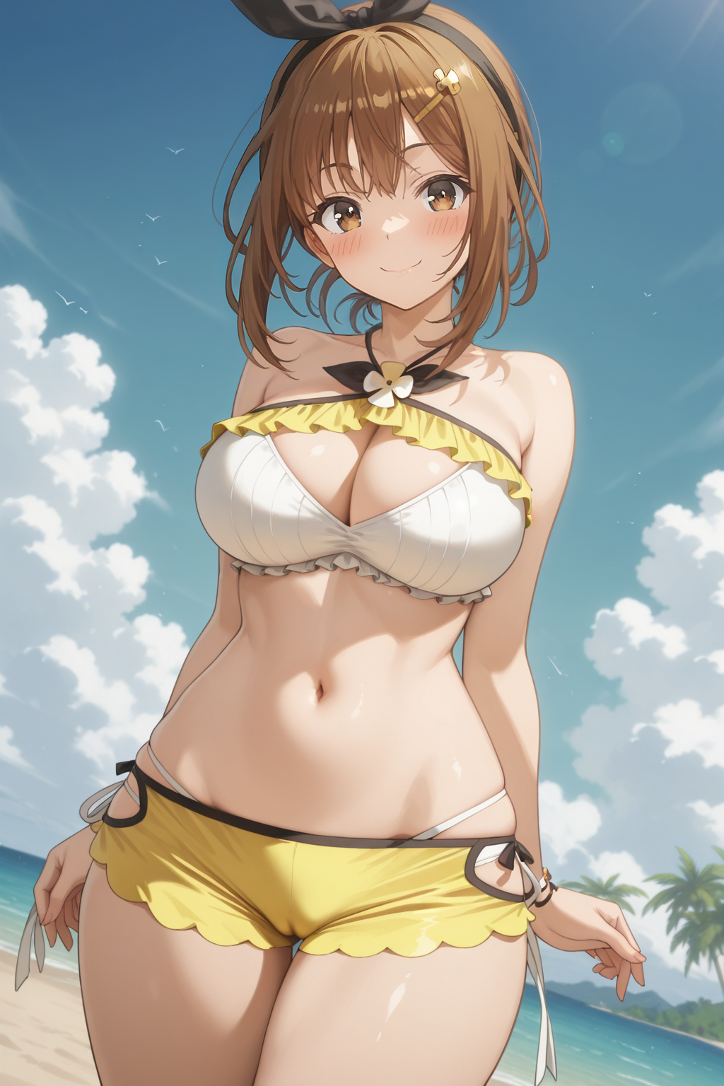 标签: ryzaswimsuit, ryzaanime, halterneckA, whiteyellow_bikini, frilled_bikiniA, yellow_flower, frill_shorts, yellow_shorts, short_shorts, layered_bikini, panty_straps