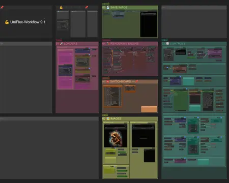 ComfyUI で UniFlex-Workflows のいずれかを開いてください。Core 🦴 エディションから始めることを推奨します。