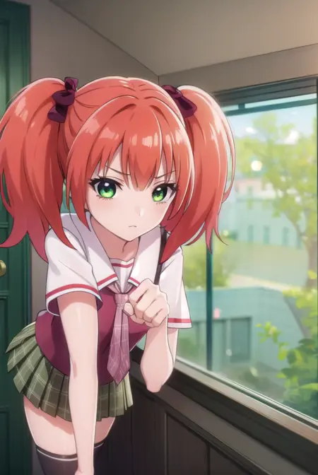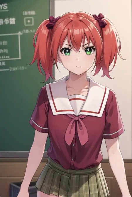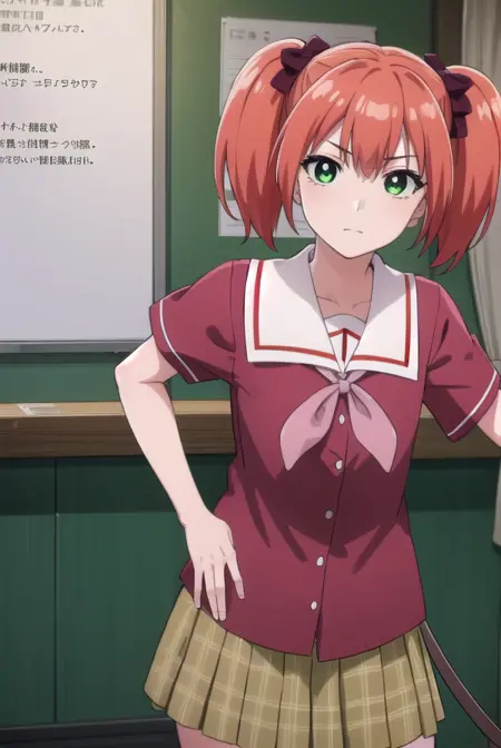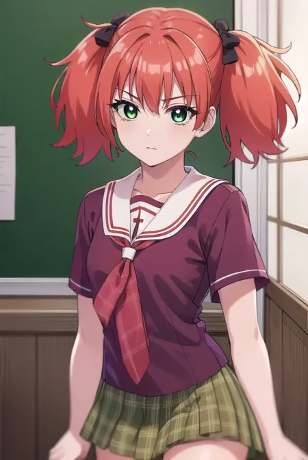 kokoa shuzen,双马尾,(绿色眼睛:1.5),红发,发带,短发,