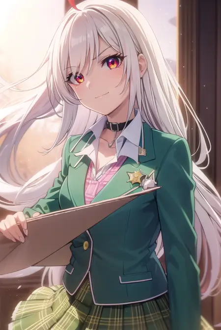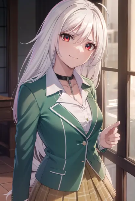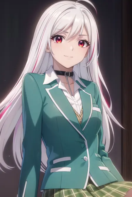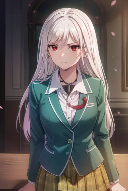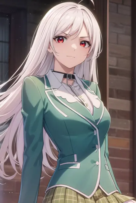 vampire moka akashiya, long hair, (red eyes:1.35), ahoge, (white hair:1.5),