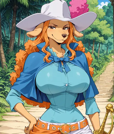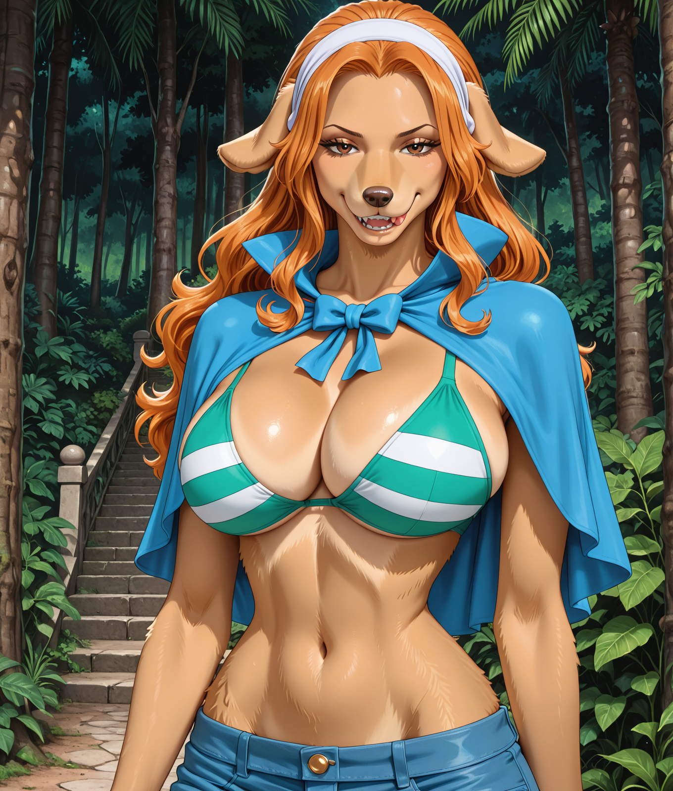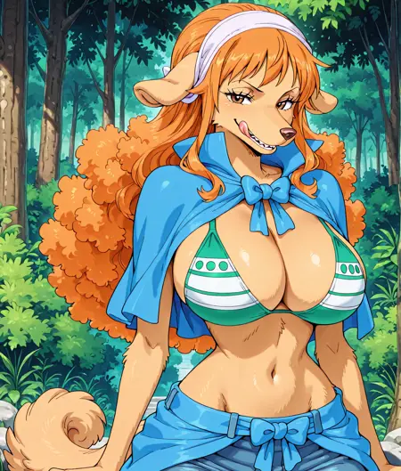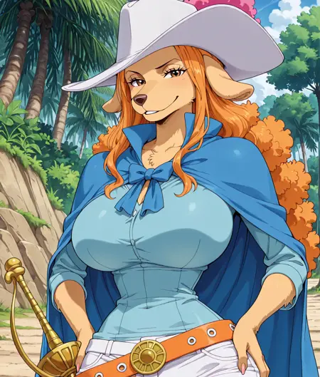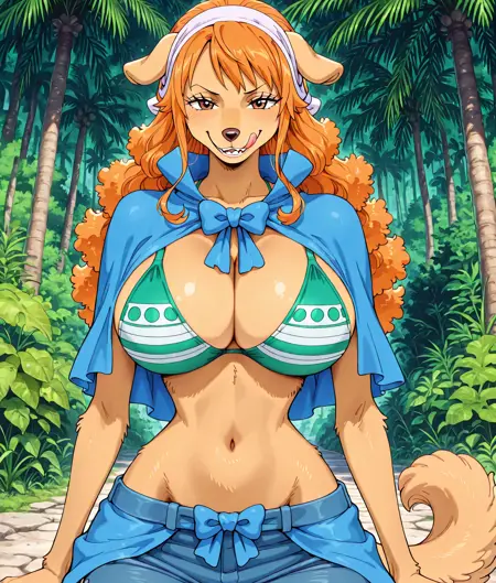 | Trained Words | wanda (one piece), toon (style), flat color, original,light brown fur, orange hair, dog girl, 1girl, furry, long hair, wandas_hairstyle, body fur, dog ears, huge breasts,Copied! white hairband, namis_outfit,blue capelet, green and white bra, narrow waist, brown eyes, midriff, blue pants, blue skirt,Copied! musketeer_outfit, light blue shirt, white shorts, purple headwear ornament, white headwear, orange belt,Copied! |