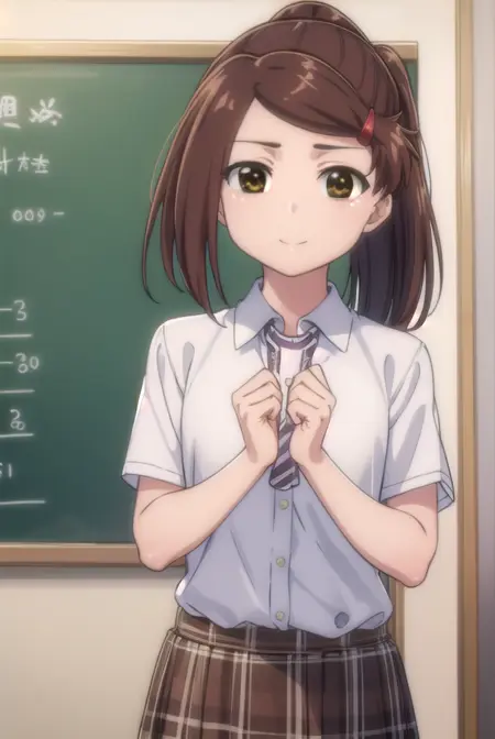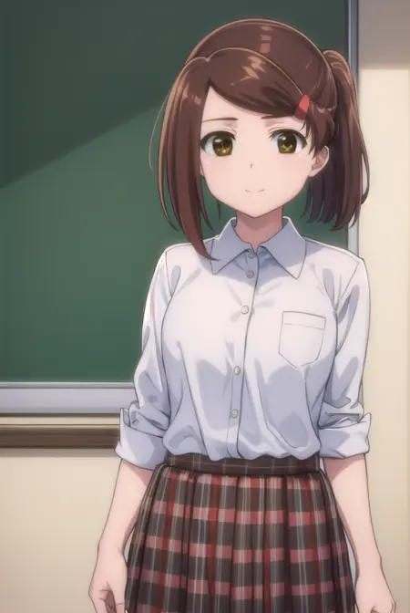 ako suminoe, 단발, 갈색 머리카락, 머리장식, (갈색 눈:1.5), 뒷머리, 머리핀,