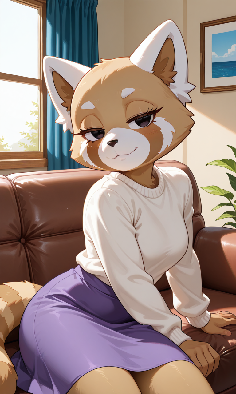 prompts: Retsukosmother_(Aggretsuko), anthro red panda, beige-brown fur, Two-tone fur