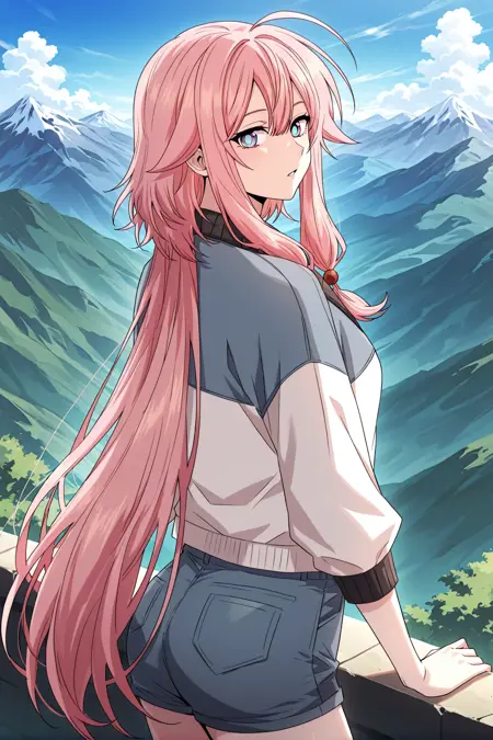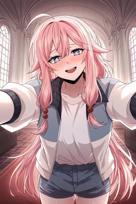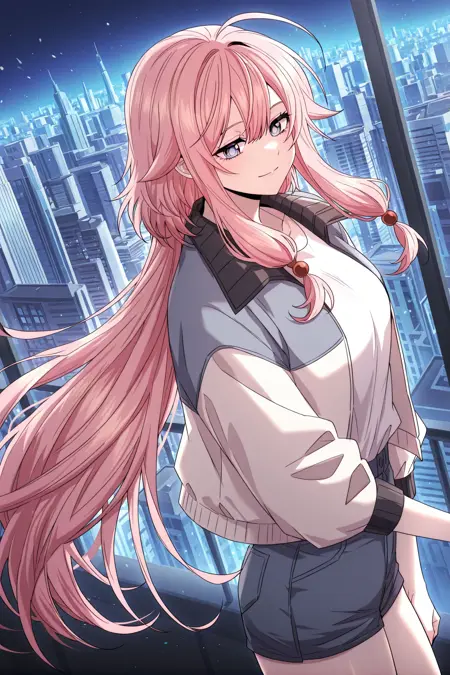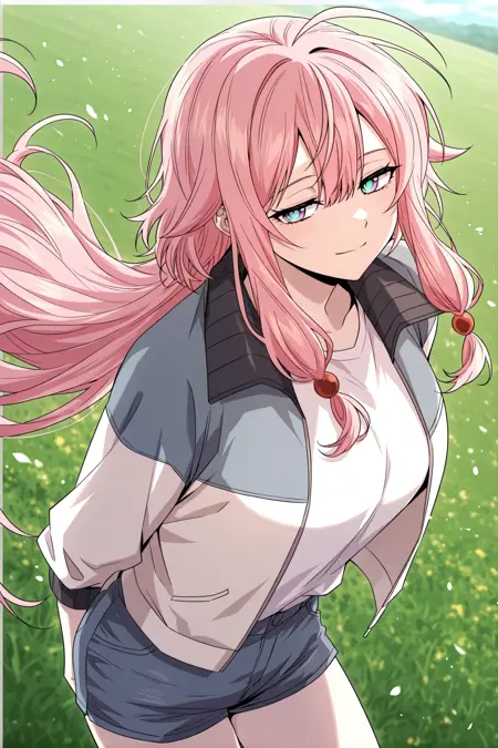 Seoah,1个女孩,单独,双色虹膜,水蓝色眼睛,紫色眼睛,粉色头发,长后发,中等前发,直发,层叠刘海,不齐刘海,头发遮住眼睛,一缕散发,呆毛,扎起的侧发,长侧发,厚侧发,发珠,