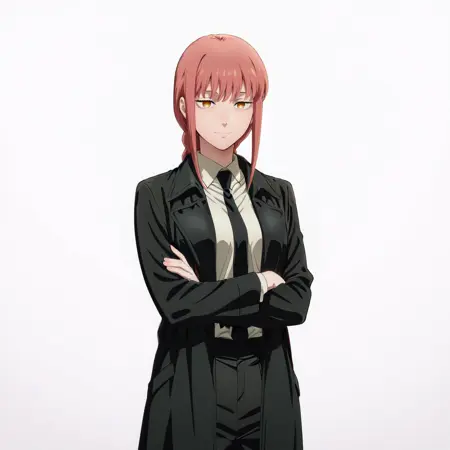 csm makima, bangs, yellow eyes, sidelocks, red hair, long hair,ringed eyes,