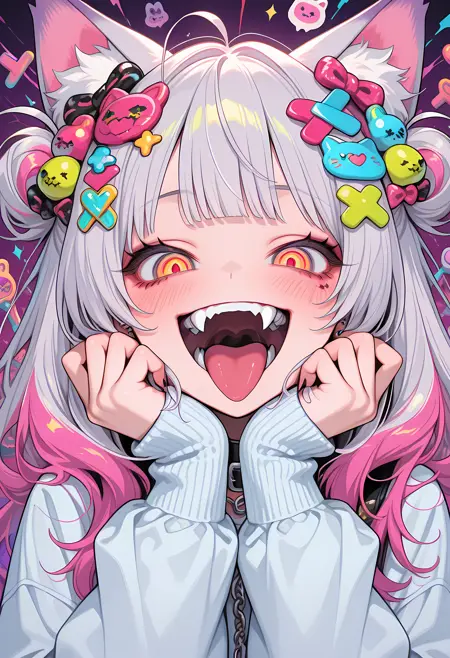 이 LoRA는 하라주쿠 데코라 스타일의 귀여움을 활용한 실험입니다! 하지만 그 안에 미친 요소가 담겨 있습니다!