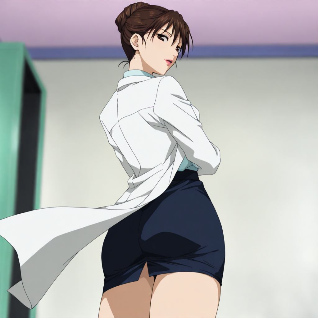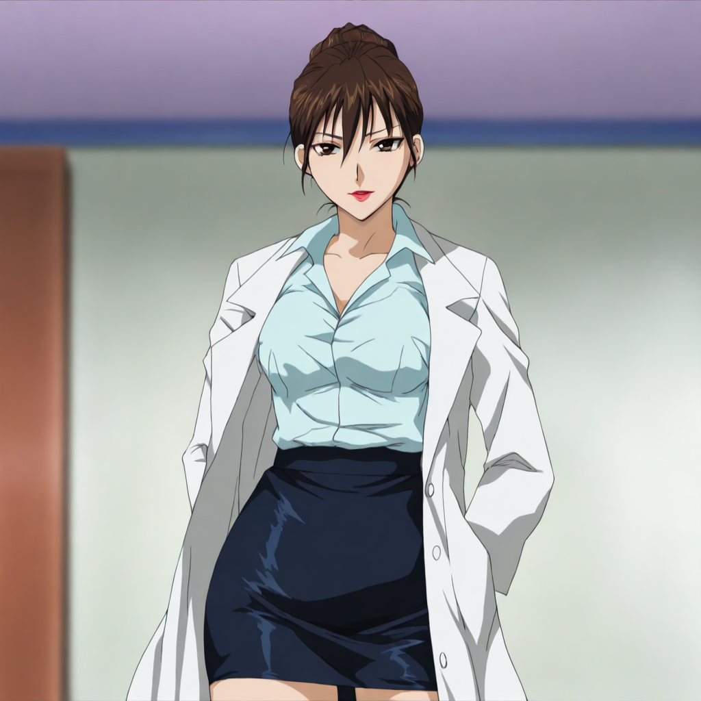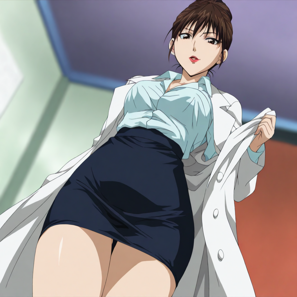 shirt,lab coat,pencil skirt
