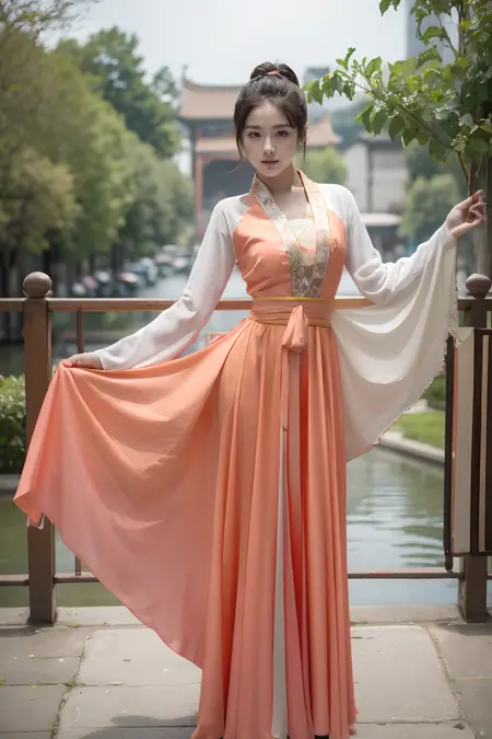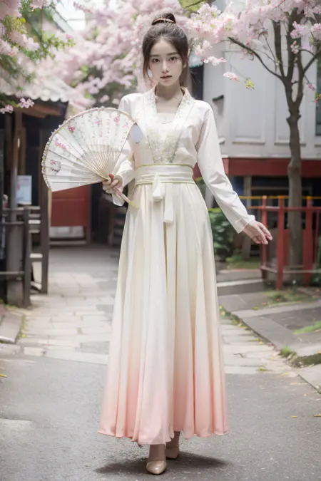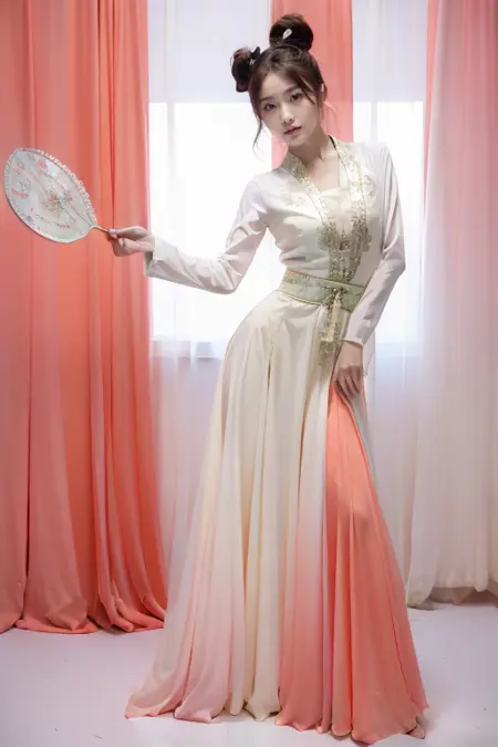 オプション語: 白い中国風ドレス、赤い中国風ドレス、(巨乳:1.2)、乳首、太もも、お尻、手扇子