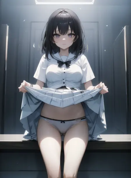 Produces or generates an image with your character lifting her skirt up, and the great part about that is you have the freedom to decide and choose what you see underneath her skirt.