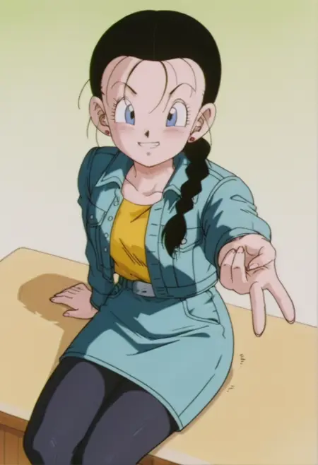 earrings, denim jacket, open jacket, yellow shirt, denim skirt, pencil skirt, pantyhose, yellow footwear,