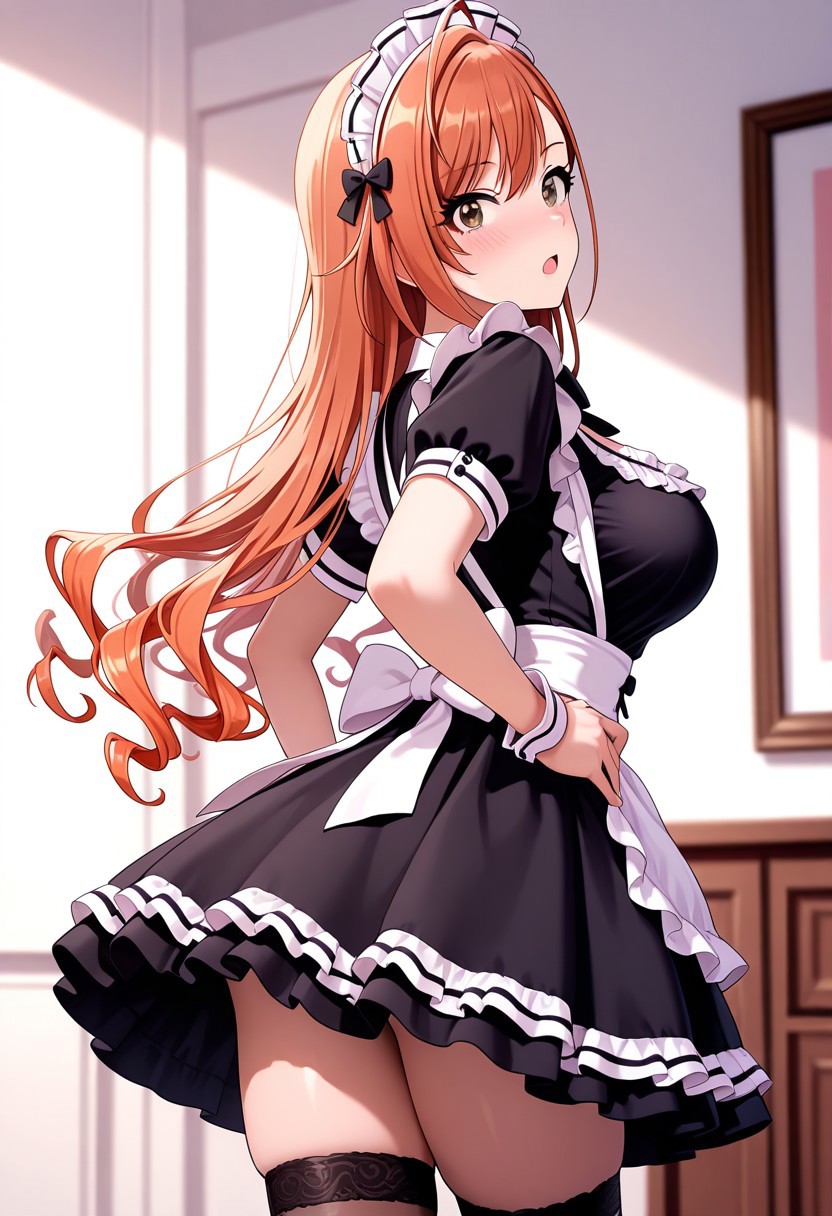 long hair,orange hair,detailed eyes,large breasts,ahoge,