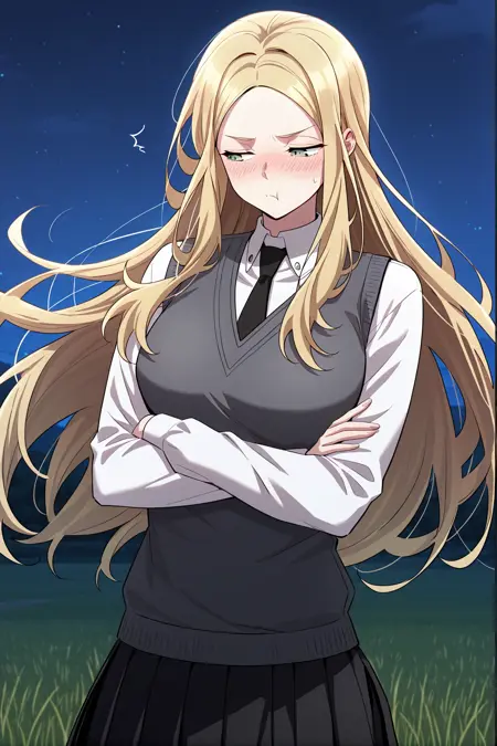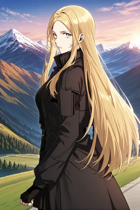 韩吉,1女孩,单人,鼠尾草绿眼睛,长发,金发,中分刘海,长侧发,
