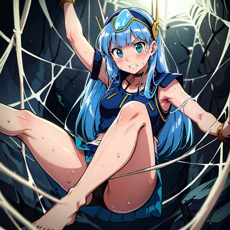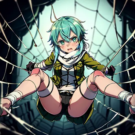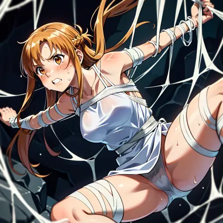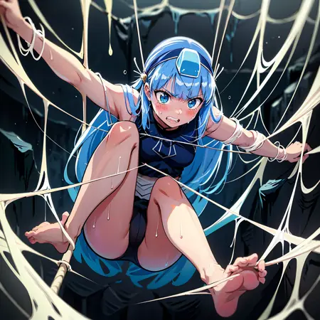 또한, 캐릭터가 공중에 떠 있는 이미지를 만들고 싶다면, 'floating', 'legs up', 'spread legs'와 같은 프롬프트를 포함하는 것이 도움이 됩니다. 이러한 프롬프트는 캐릭터가 거미줄에 얽힌 채 공중에 매달려 있는 이미지를 생성하기 더 쉽게 만들어 줍니다.