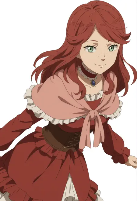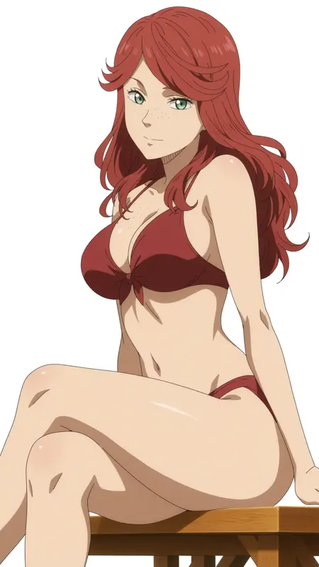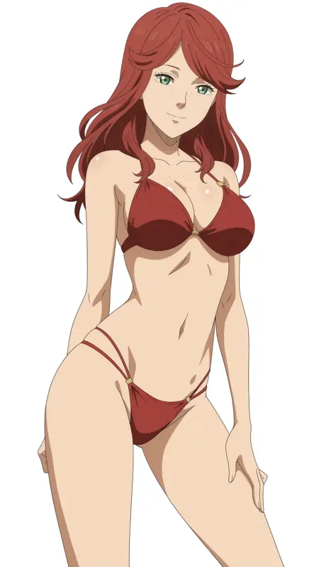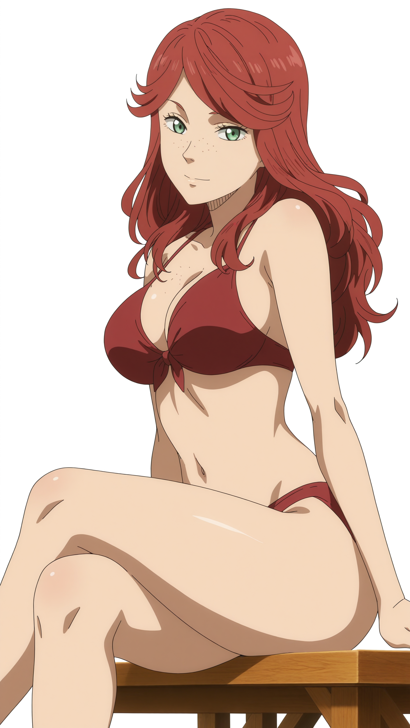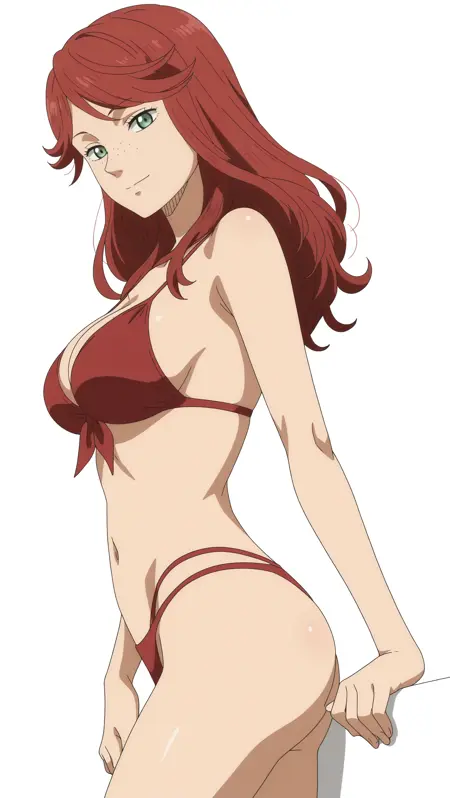 rebecca_scar1et, red hair, long hair, green eyes, freckles