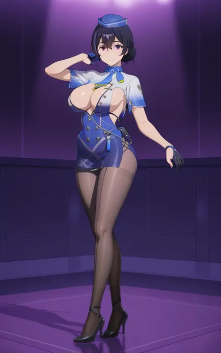 V1.2 with just trigger:vidya,flight attendant uniform, pantyhose, gloves, glasses, hat