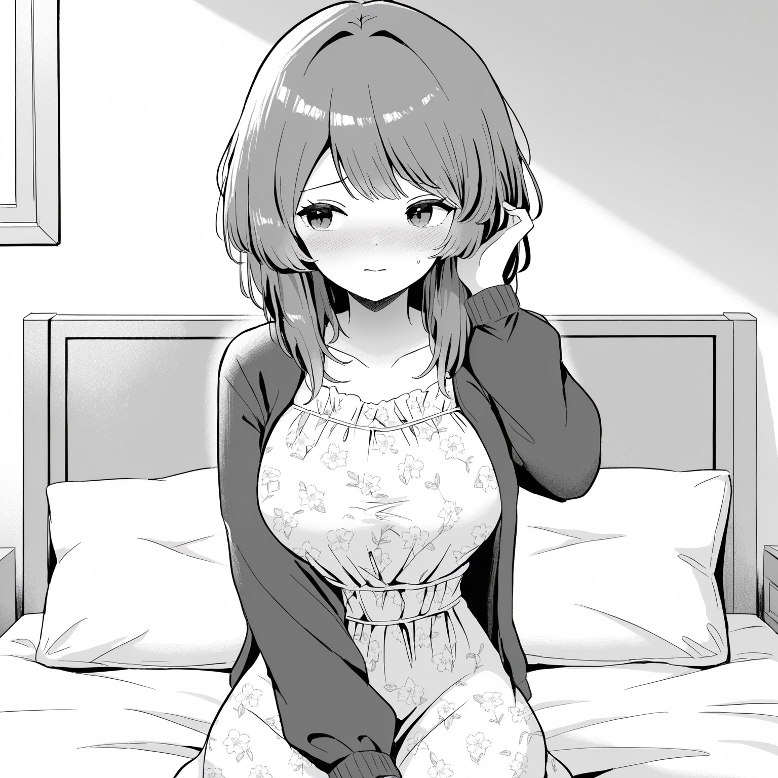 4. yuzumng, 1girl, medium hair, breasts, yuzuhome, floral print, long sleeves, dress, jacket, open clothes, open jacket