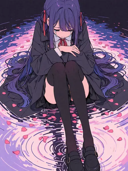 crisp outlines, ink texture, artbook styleを含めてください。スケッチ、漫画、フラットイラストのデータセットでトレーニングされたLoRAと組み合わせると非常に効果的です。