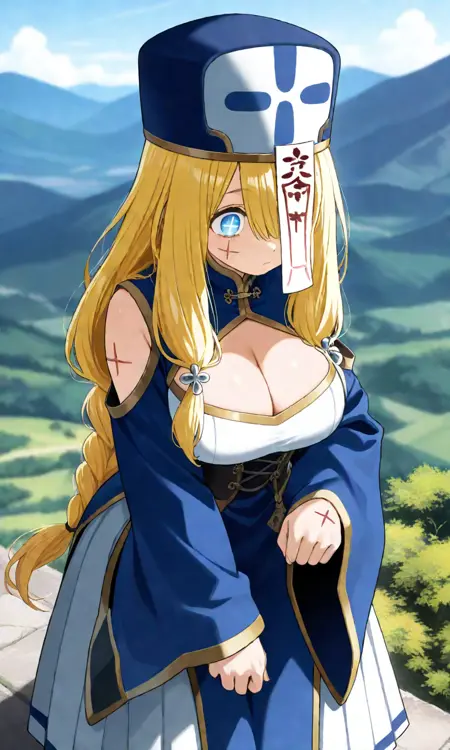| 训练词汇 | (dumb_opheliaTPH,1girl,blonde hair,low-braided long hair,blue eyes,(chibi style:0.7),symbol-shaped pupils,lips,2cross scar on mouth both edges),已复制! (breasts,shiny hair,bright hair,anime coloring),已复制! (jiangshi,hat,ofuda,robe,golden trim,corset,long pleated skirt,cleavage,cleavage cutout,arms cutout),已复制! |