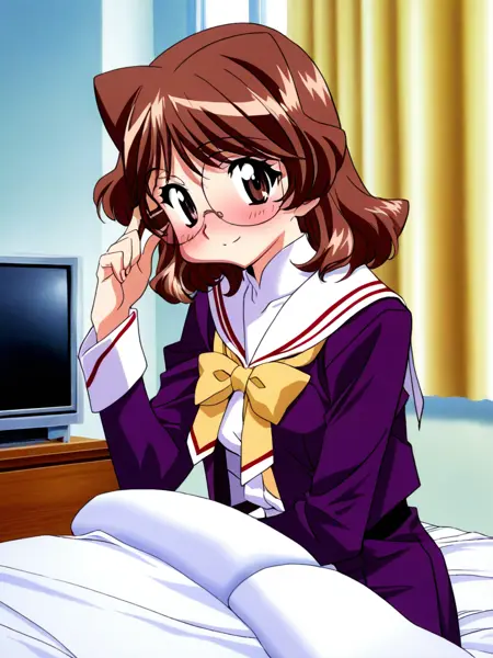 Takigawa_Sayaka, 1girl, solo, 갈색 머리카락, 안경, 갈색 눈, 단발, 중간 크기의 가슴,