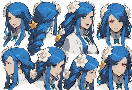 外观: 1个女孩,红眼睛,蓝眼睛,异色瞳,多色头发,长发,白发,蓝发,极长发,刘海,发花,发饰,侧发辫,辫子,单辫,编发马尾,分刘海,扫刘海