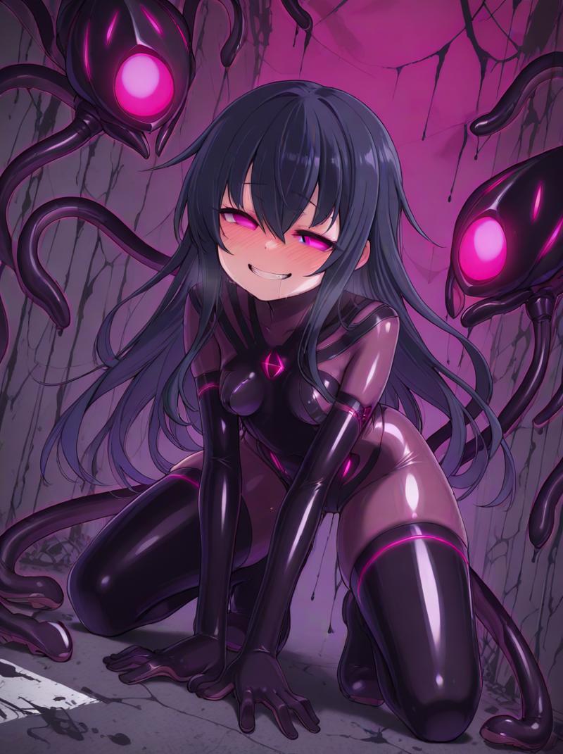 Trigger word : latex, tentacles, bodysuit, thighhighs, suction cups, very long fingers, helmet,