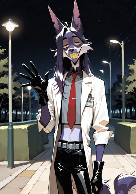 附加项: 白色实验外套,黑色长裤,灰色腰带,黑色鞋子,红色领带,灰色短上衣,黑色皮手套