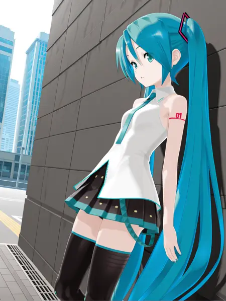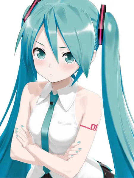 触发词・l_miku, 头饰, 双马尾, 水色头发, 水色眼睛,
