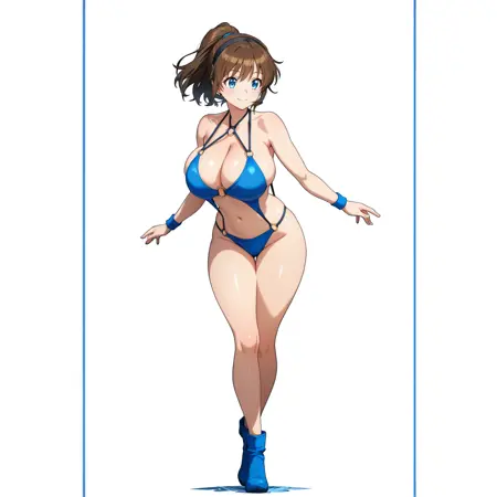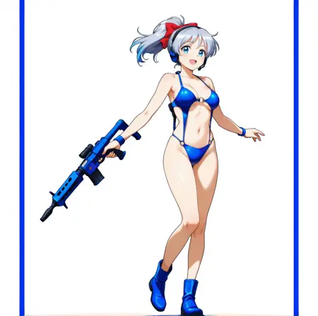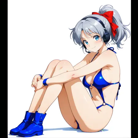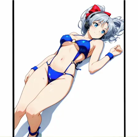由于LoRA组合或参数调整,比基尼的蓝色可能会变淡,