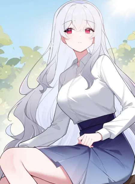 shirt,white shirt,hairband,skirt,long sleeves,