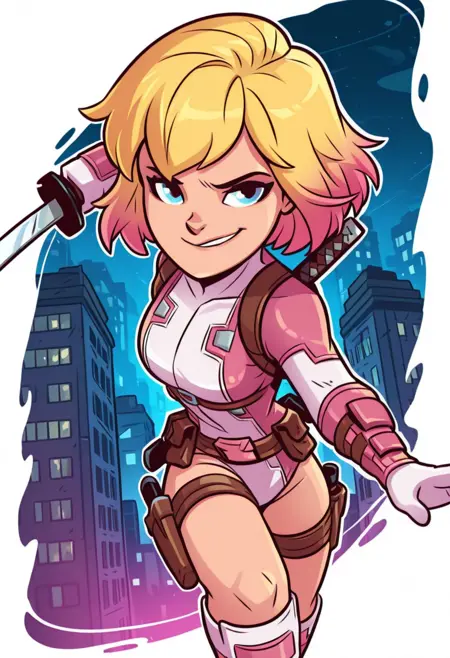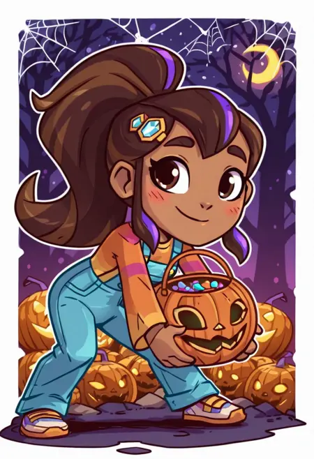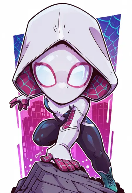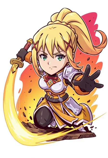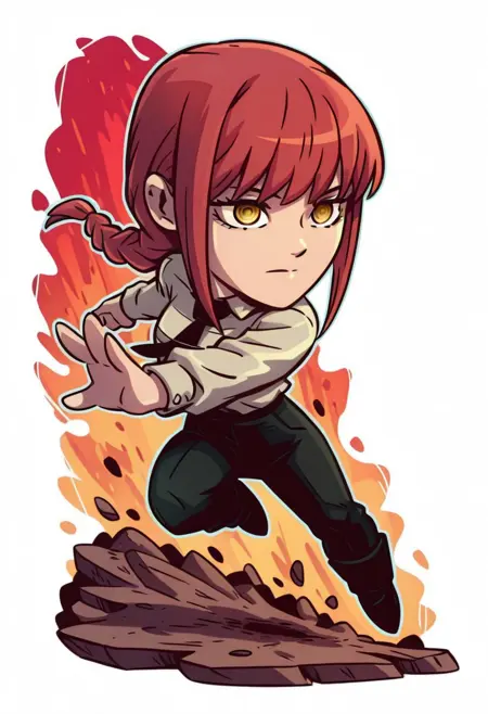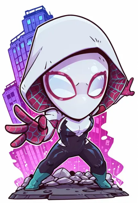((white background, chibi cartoon style, thick outline, cel shading, dynamic pose, vibrant colors, comic background))