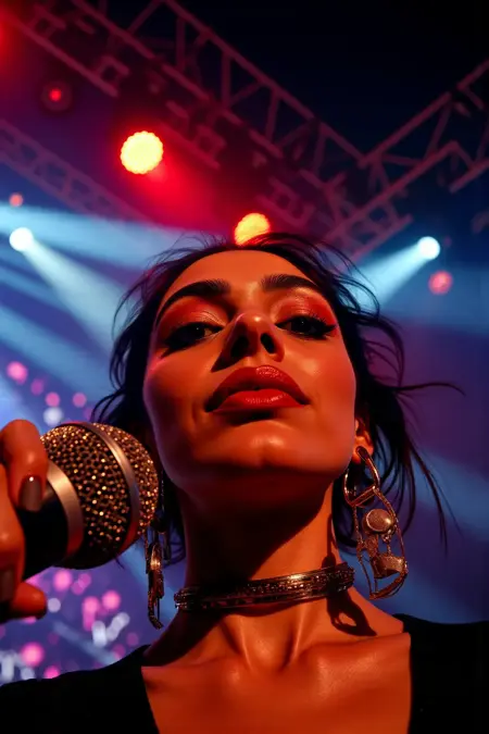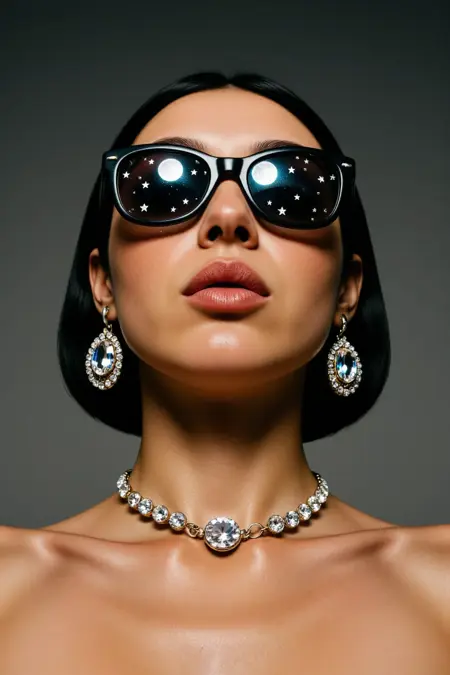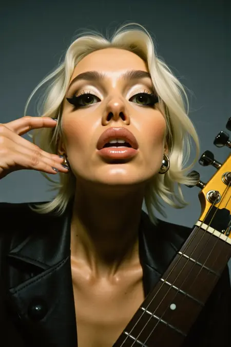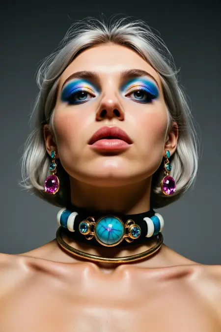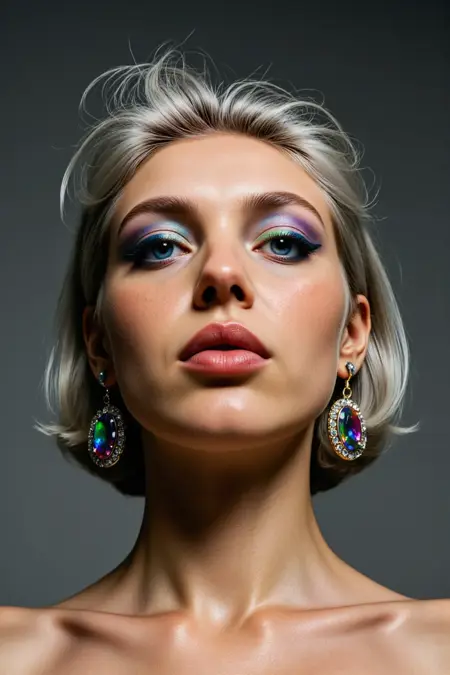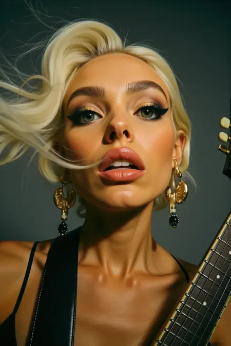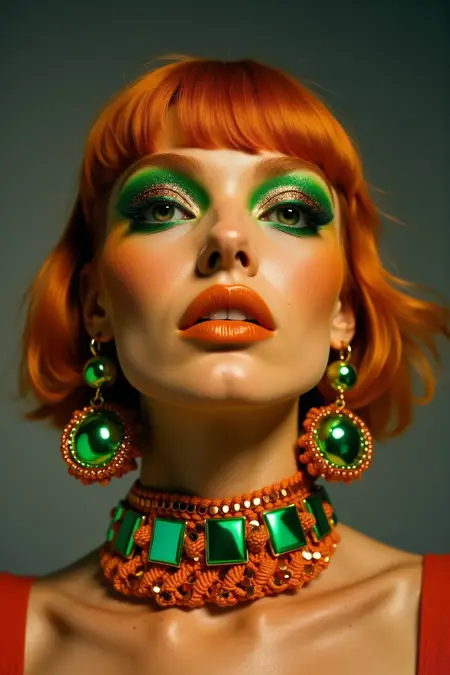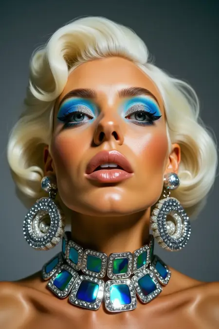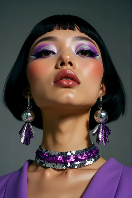 What She Does: • Summons iconic disco queens with accessories shinier than a mirror ball! 💎 • Guarantees that "fierce editorial stare" – think "I own this dance floor" vibes only. 😼 No silly smiles here! • Packs on the vibrant eyeshadow, glitter for days, and fabulous bronzed glow. 🌈☀️