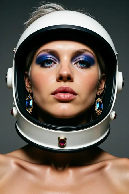 | Closeup | Hyperrealistic editorial fashion closeup of a female model | 85mm lens |