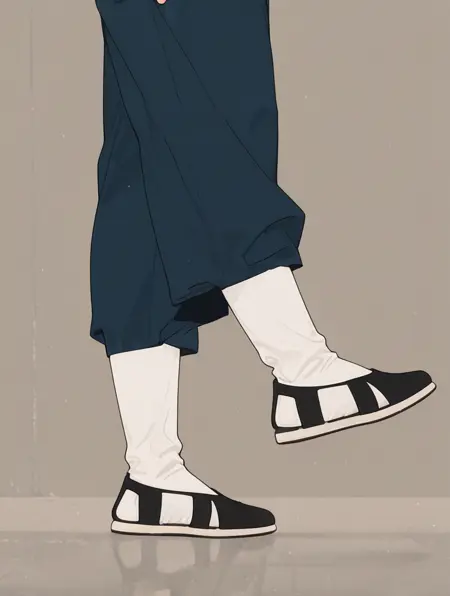 1、black s-flats,white legwear,