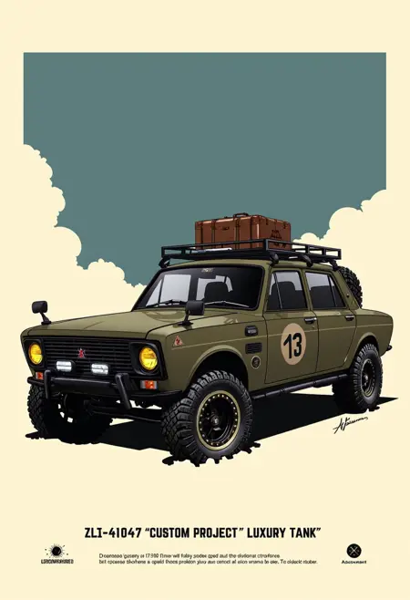 Turn any subject into a clean, high-impact cover with YFG Karli v1—a versatile illustrated poster engine that shines with vehicles and adapts effortlessly to bold graphic compositions.