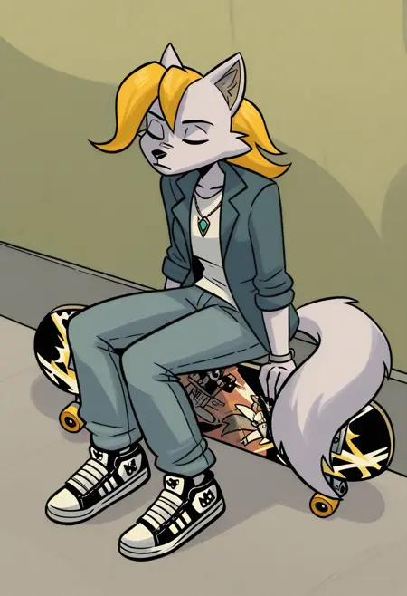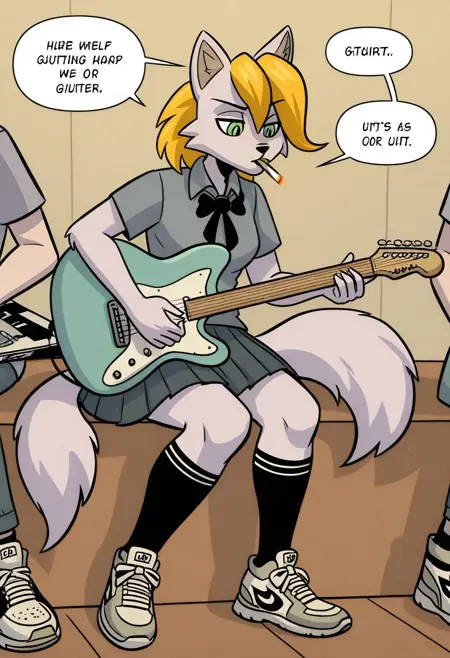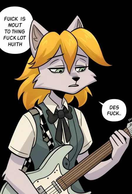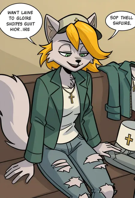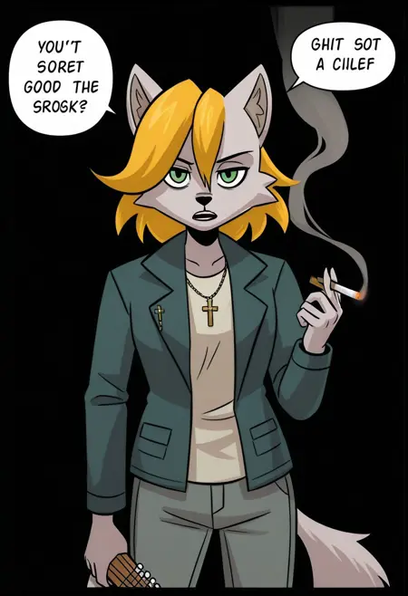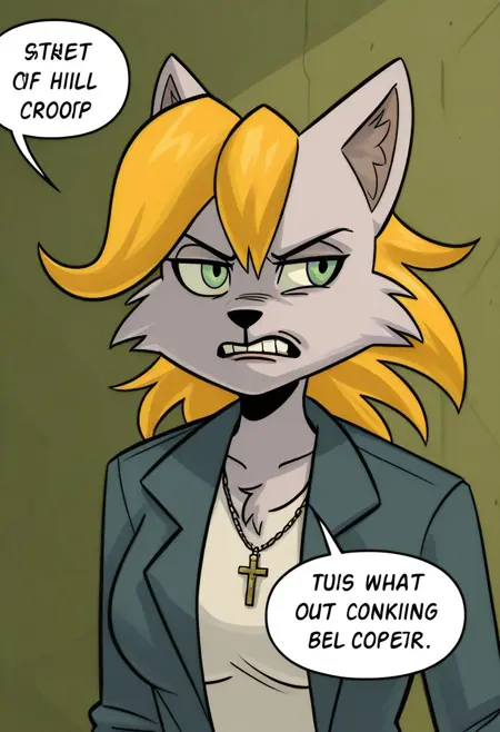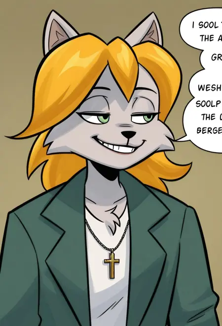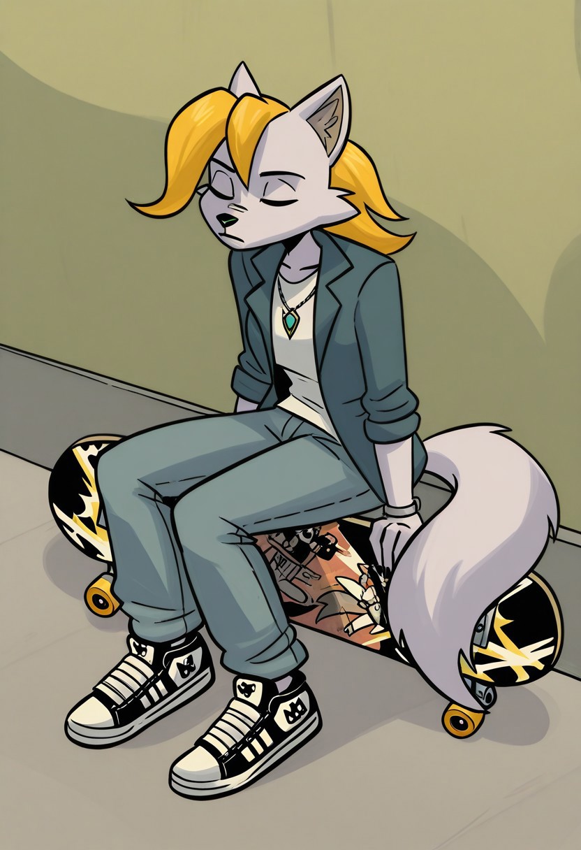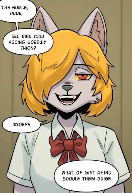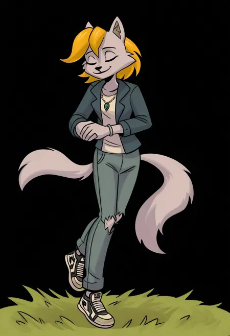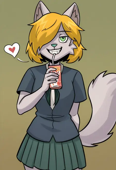 rn_gb, 1girl, solo, 늑대 소녀, 늑대 귀, 퓨리, 퓨리 여자, 동물 귀, 금발 머리, 단발, 녹색 눈, 꼬리, 늑대 꼬리, 한쪽 눈에 걸친 머리카락,
