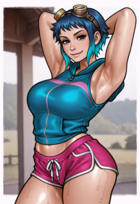 Character Tags: aqua hair, short hair, black eyes, goggles on head