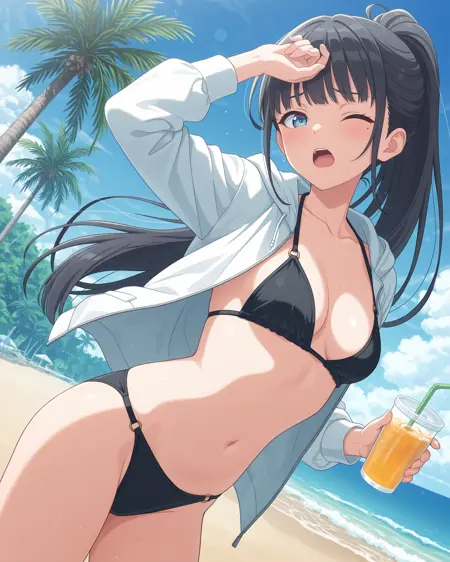基础:tsubame765pro,黑发,长发,马尾,小胸,蓝眼,眼下有痣