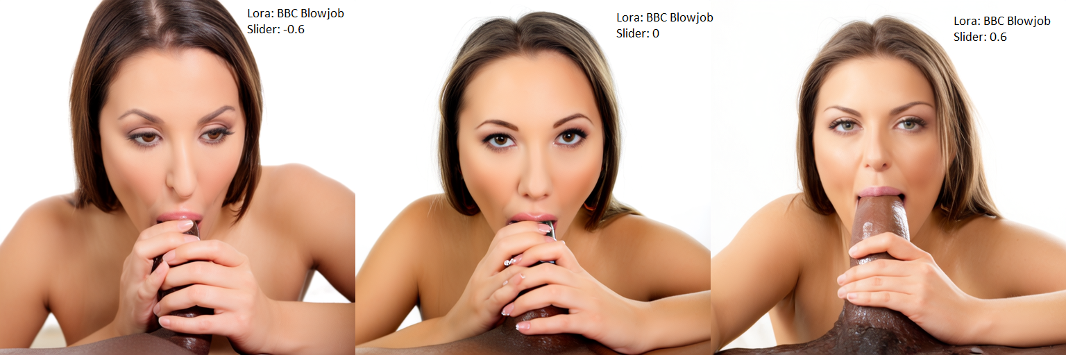 사용하는 다른 LoRA가 지원하는 크기 범위를 벗어난 음경 크기를 생성할 수 없습니다. 다른 LoRA의 범위를 벗어나도록 설정하면, 아무 효과도 없거나 LoRA에 따라 육체적인 괴물이 생성될 수 있습니다.
