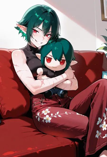 触发词:牛仔布、牛仔裤、花卉图案裤、喇叭裤,